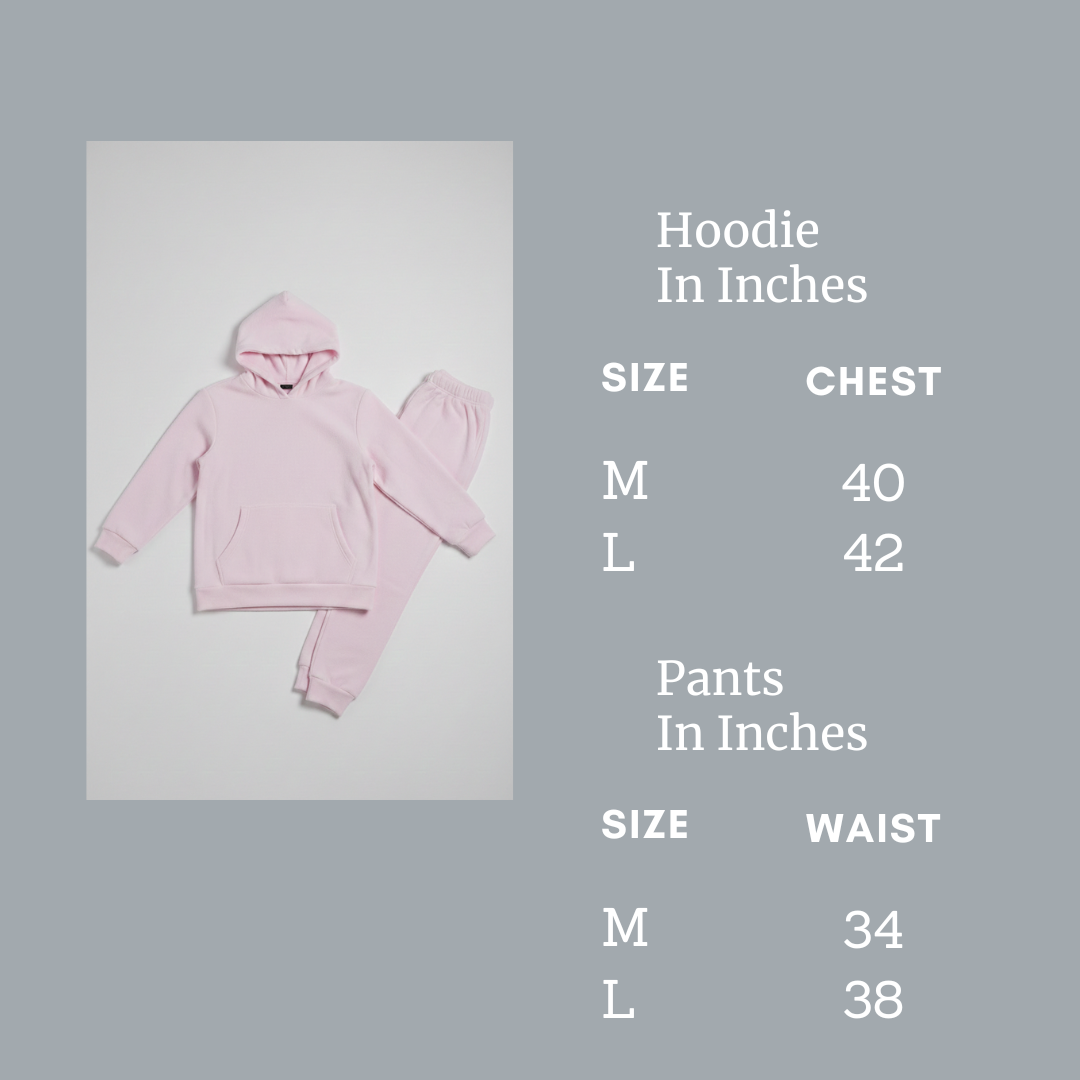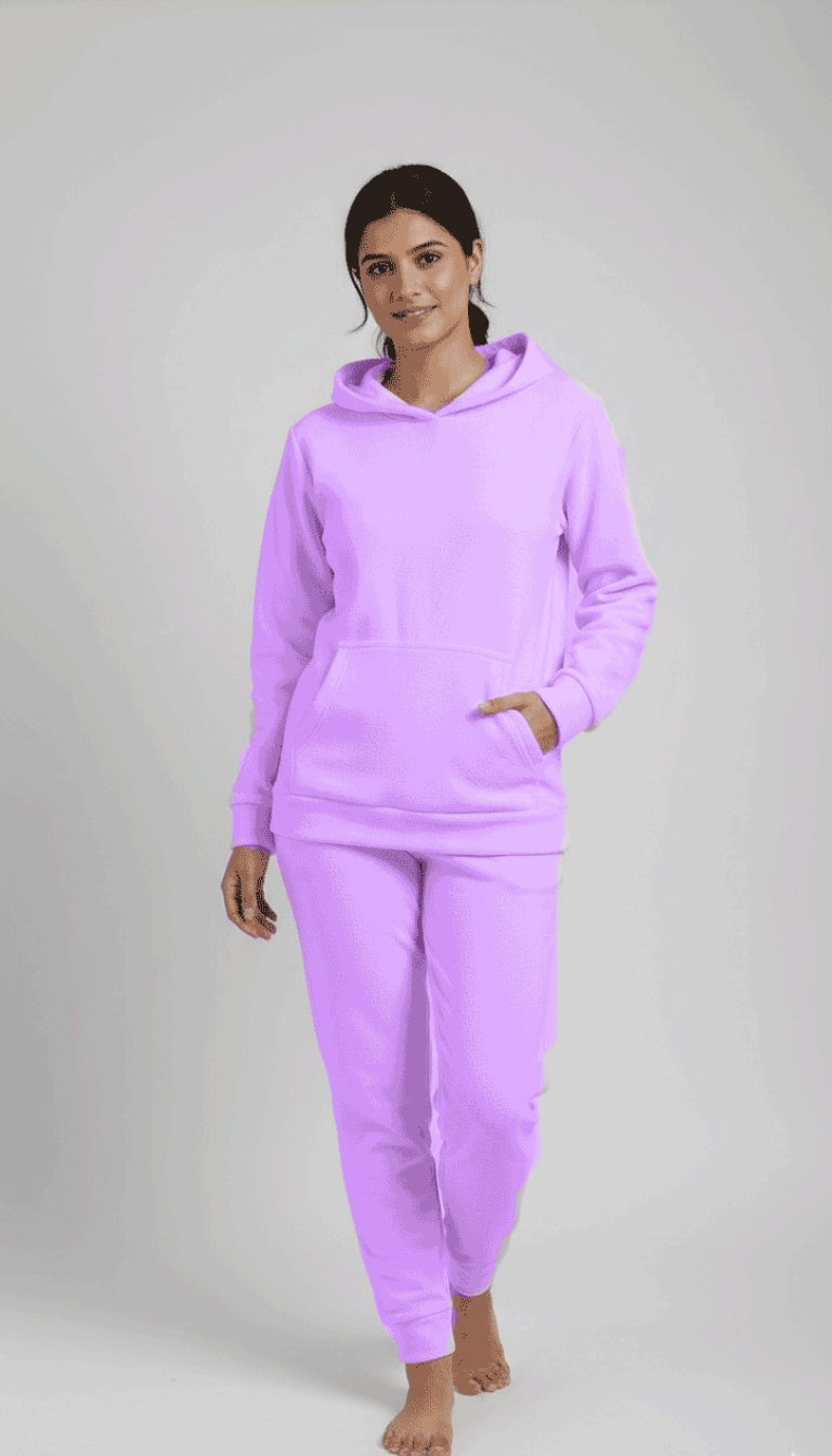 A coordinated loungewear set designed for comfort and versatility. The lavender hoodie features long sleeves and a relaxed fit,...